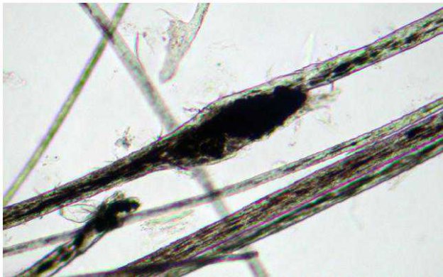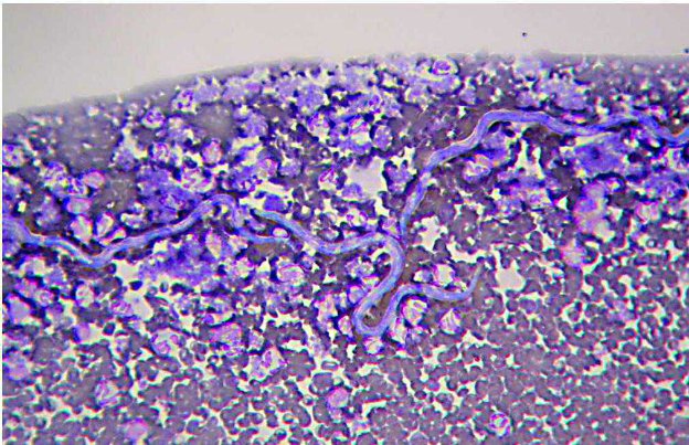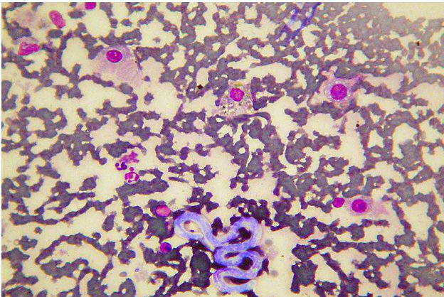 Figura 2 - Microfilaria accidentally rilevata durante un esame citologico in un gatto.