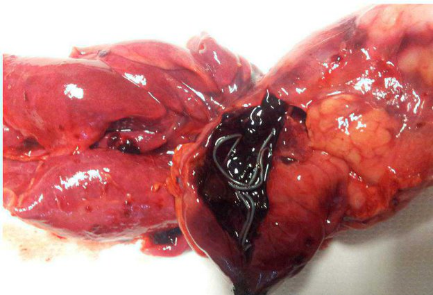 Figura 1 - Alcune filaire adulte all’interno delle camere cardiache di un gatto.